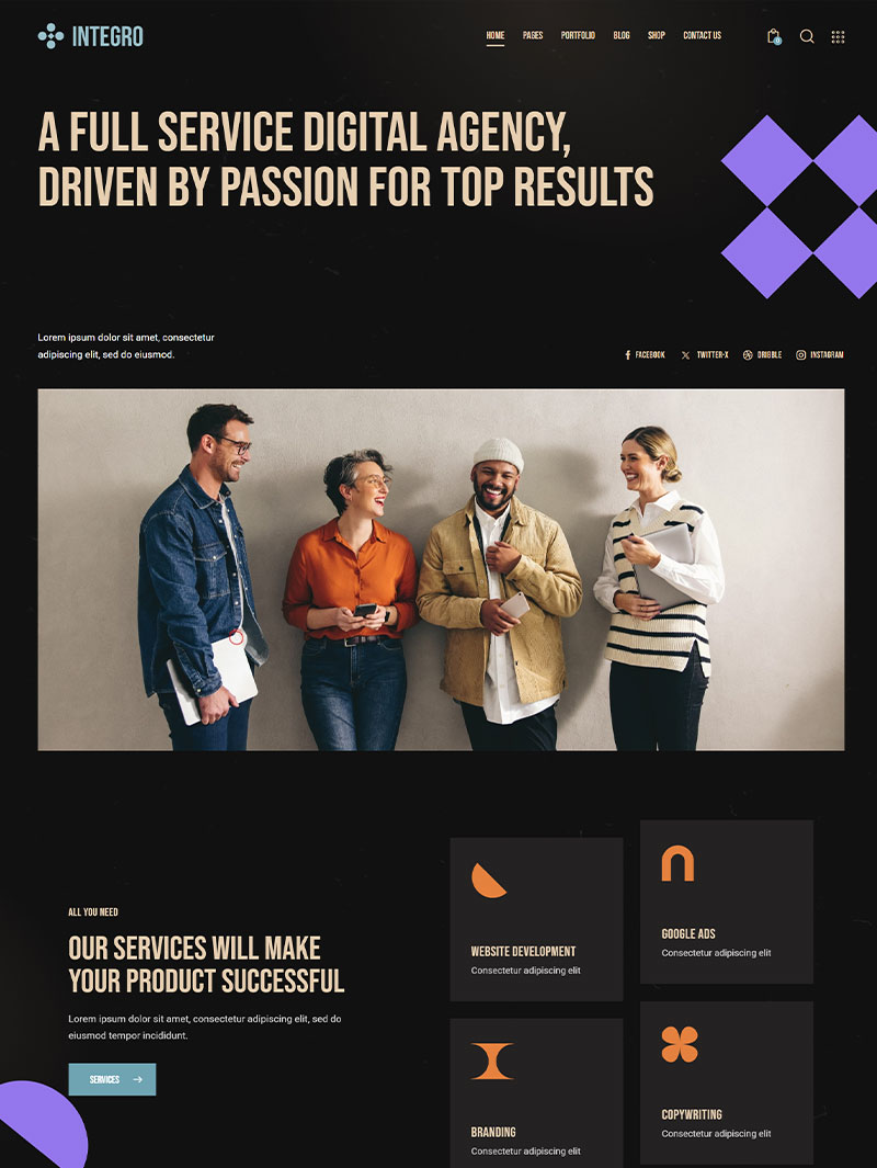 Bu hizmet kapsamında, irewebsite tarafından edinilmiş Integro Web Studio Teması orijinal olarak belirttiğiniz websiteye teslim edilir. Kurulum işlemi, yalnızca hizmet talep edilen projeye özel olarak teknik ekibimiz tarafından orijinal olarak Envato Elements Lisans Tokeni ile yapılır.