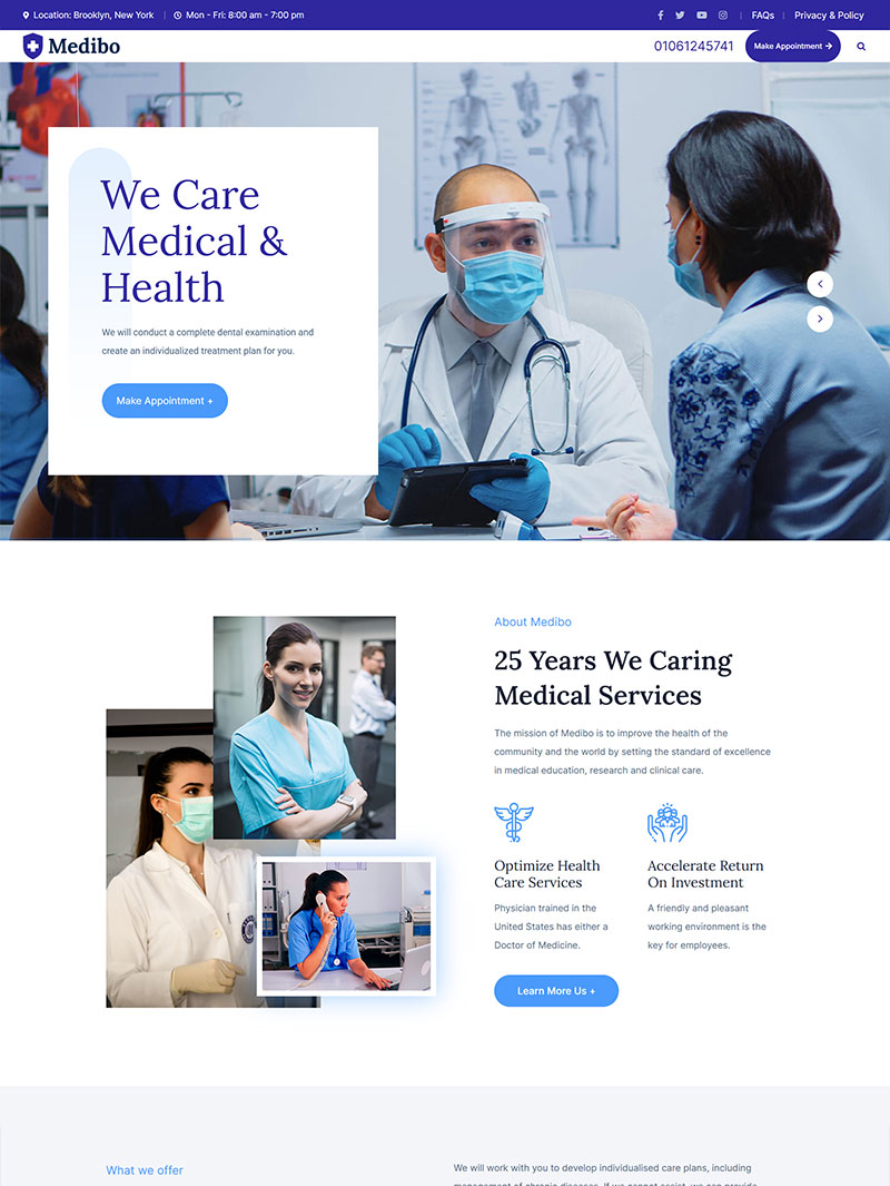Bu hizmet kapsamında, irewebsite tarafından edinilmiş Medibo Medikal Teması orijinal olarak belirttiğiniz websiteye teslim edilir. Kurulum işlemi, yalnızca hizmet talep edilen projeye özel olarak teknik ekibimiz tarafından orijinal olarak Envato Elements Lisans Tokeni ile yapılır.