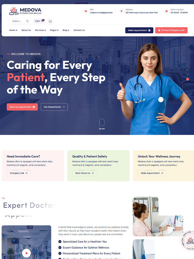 Bu hizmet kapsamında, irewebsite tarafından edinilmiş Medova Medikal Teması orijinal olarak belirttiğiniz websiteye teslim edilir. Kurulum işlemi, yalnızca hizmet talep edilen projeye özel olarak teknik ekibimiz tarafından orijinal olarak Envato Elements Lisans Tokeni ile yapılır.